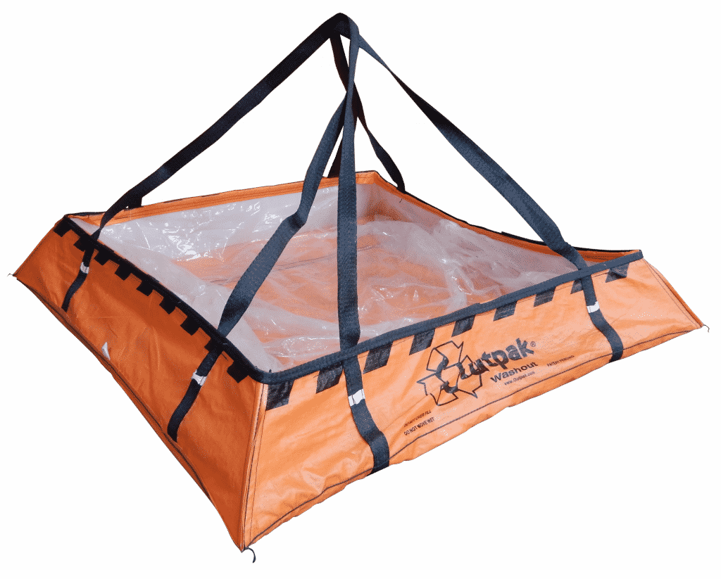 The Outpak All-Weather Washout is also designed for a quick and easy set-up but can remain for the long-term duration of your project without filling with rain or absorbing ground water. There are sizes for both mixer and pump trucks and can be used to wash off your tools including wheelbarrows. Dispose of after evaporation and job completion.